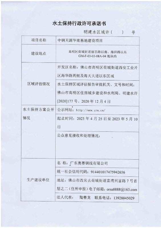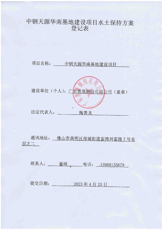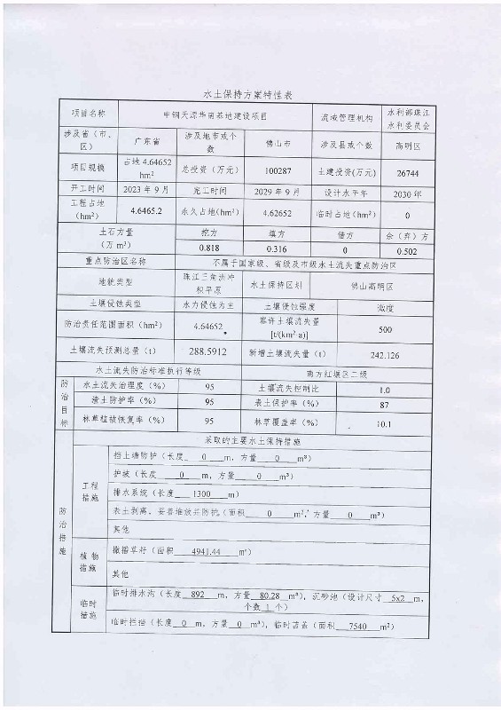 中鋼天源華南基地建設(shè)項目水土保持公示