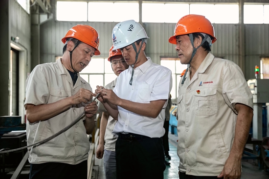 中鋼天源黨委書記、董事長毛海波、中鋼制品院領(lǐng)導(dǎo)班子成員、相關(guān)職能部門負(fù)責(zé)人參加調(diào)研。(董峰、郝華杰)